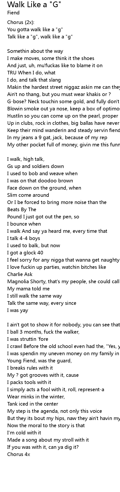 You gotta walk like a "g" |