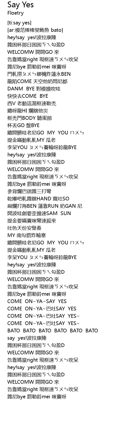 | [01:35.988] | hey! say yes! bo la kang chen |