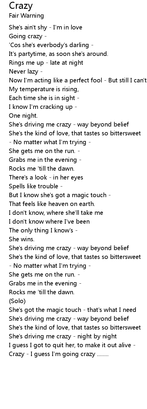 Crazy - I guess I'm going crazy ........ |