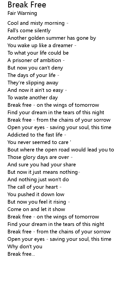 Break free - from the chains of your sorrow |