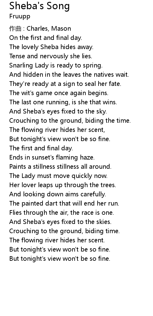 | Song | Sheba's Song |