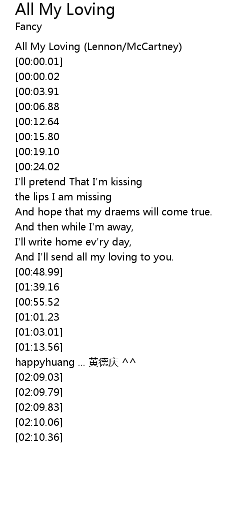 | [01:50.91][01:39.16][00:49.53] | All my loving I will send to you. |