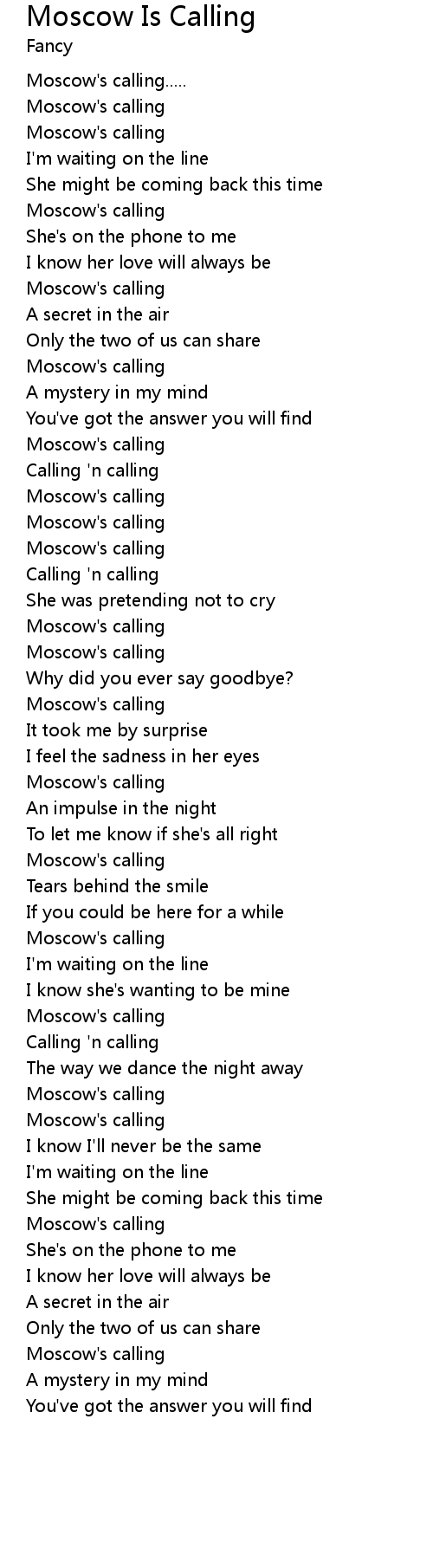 Moscow's calling..... |