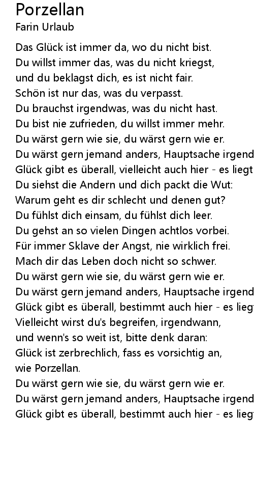 | Das Glü ck ist immer da, wo du nicht bist. | |