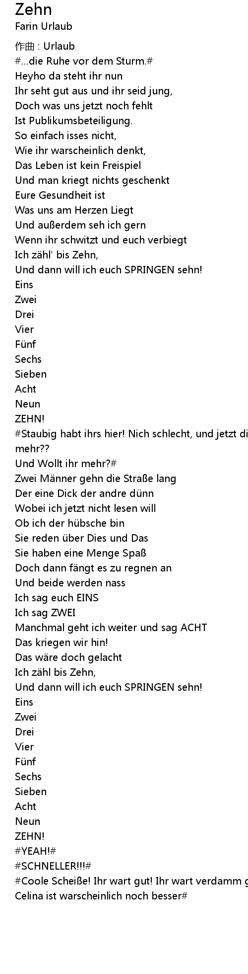 | Song | Zehn |