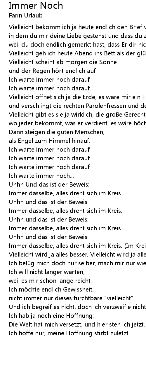 | Vielleicht wird ja alles besser. Vielleicht wird ja alles gut. | |
