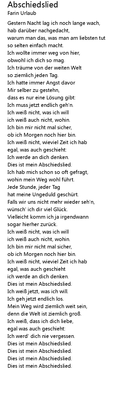 | Falls wir uns nicht mehr wieder seh' n, | |