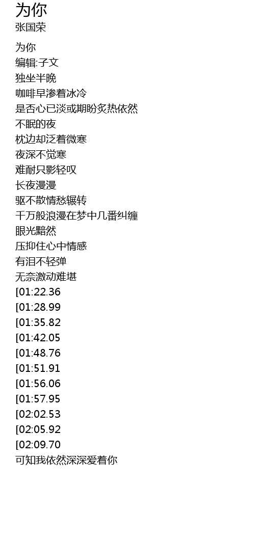 | [00:02.94] | 为你 |