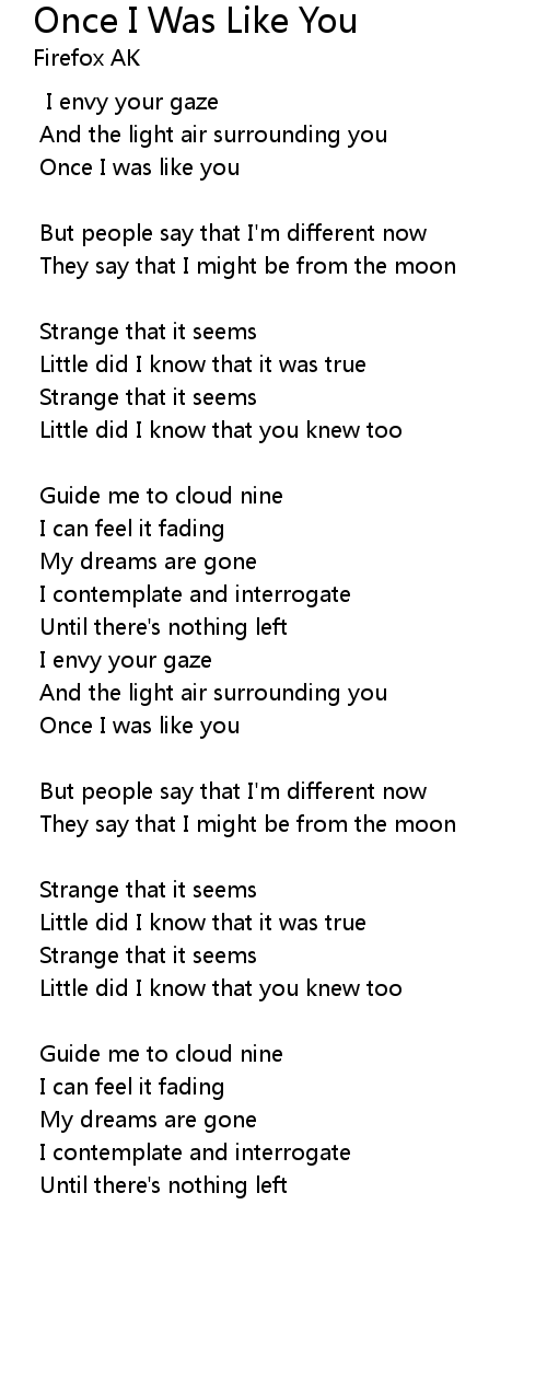 Once I was like you |
