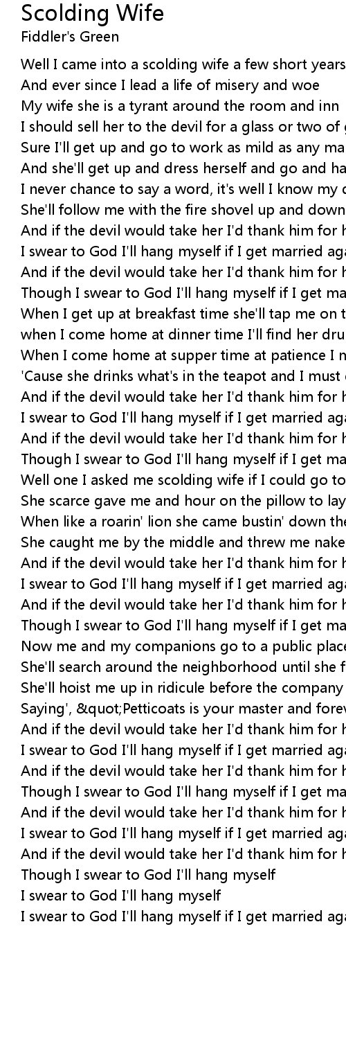 Well I came into a scolding wife a few short years ago |
