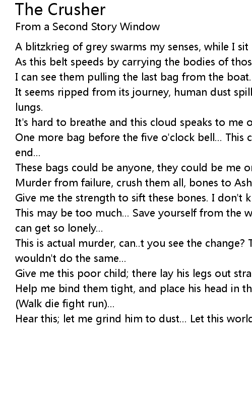 It seems ripped from its journey, human dust spills everywhere clogging my lungs. |