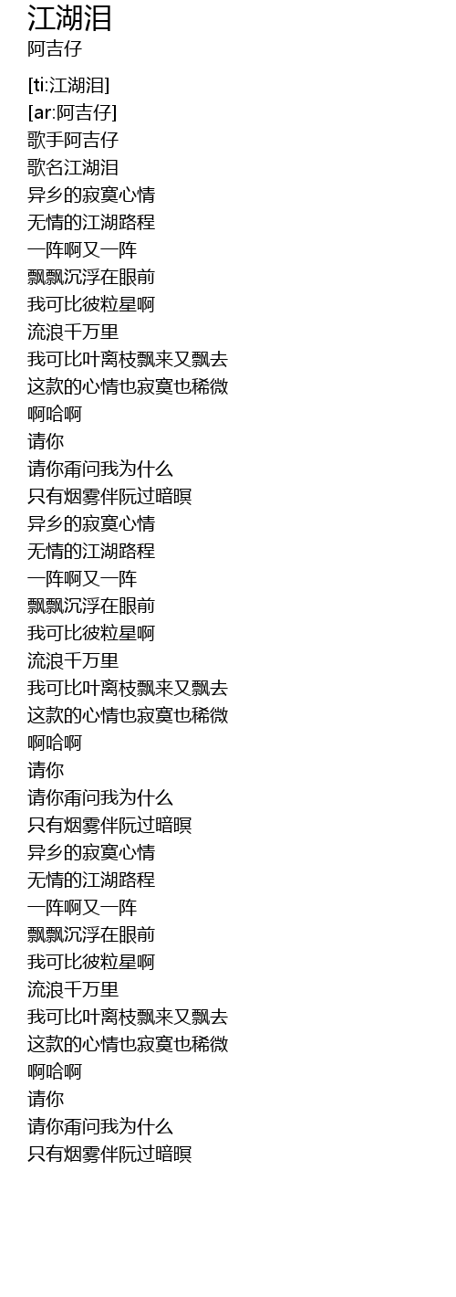 | [03:11.295] | 我可比叶离枝飘来又飘去 |