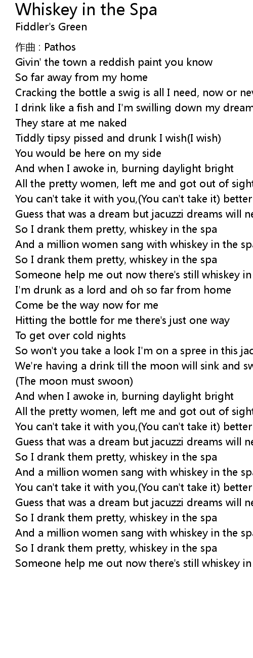 | Song | Whiskey in the Spa |