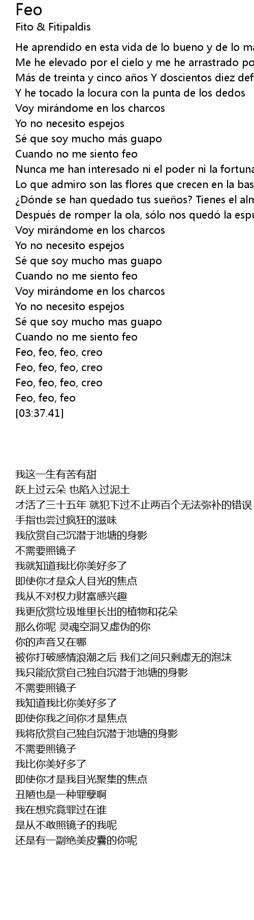 | [00:49.87] | Más de treinta y cinco años Y doscientos diez defectos |