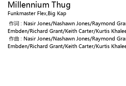 | [00:00.000] | 作词 : Nasir Jones/Nashawn Jones/Raymond Grant/Toure Embden/Richard Grant/Keith Carter/Kurtis Khaleel |