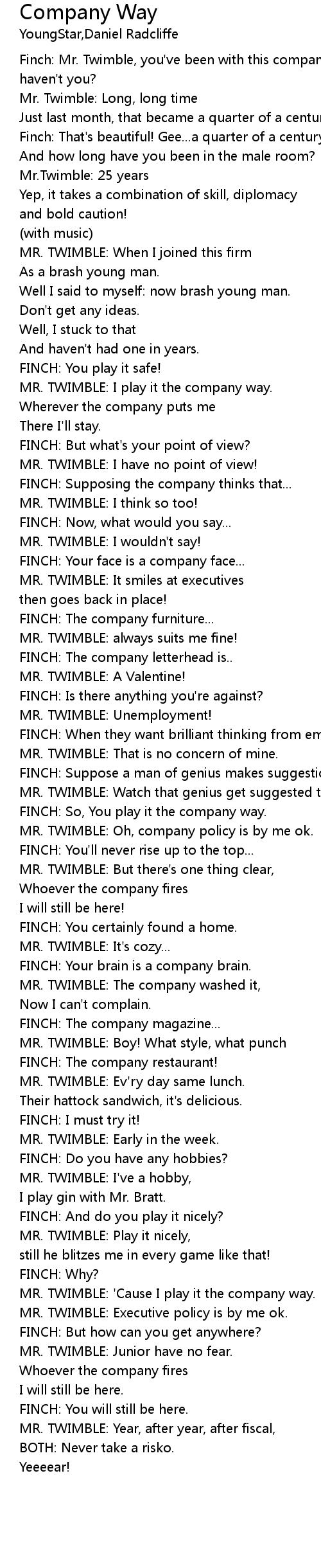 FINCH: So, You play it the company way. |