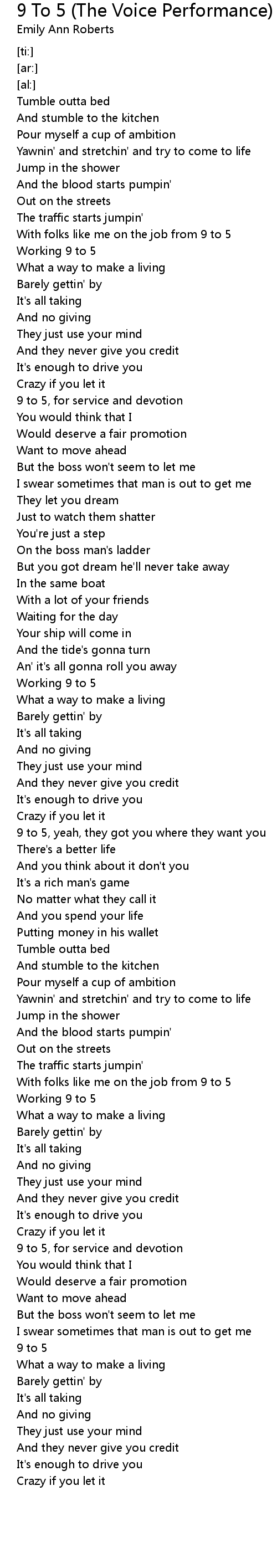 9 To 5 (The Voice Performance) Lyrics