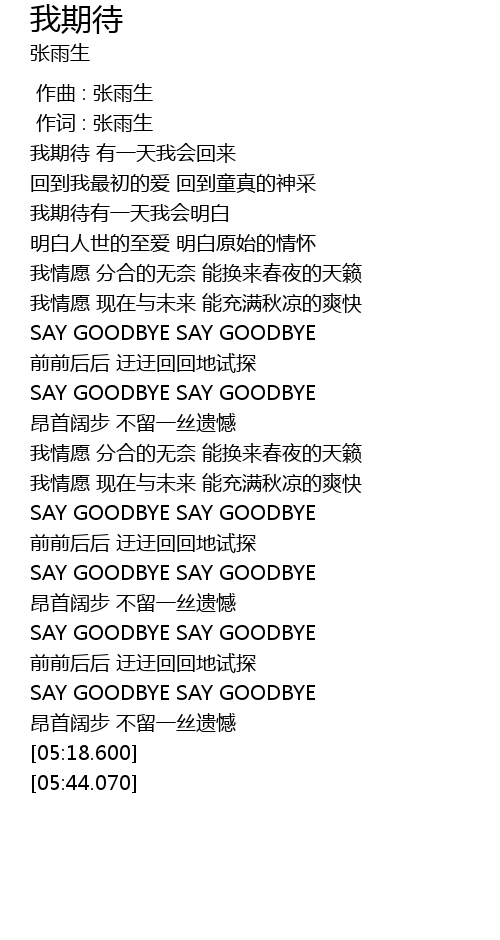 | [04:47.780] | SAY GOODBYE SAY GOODBYE |