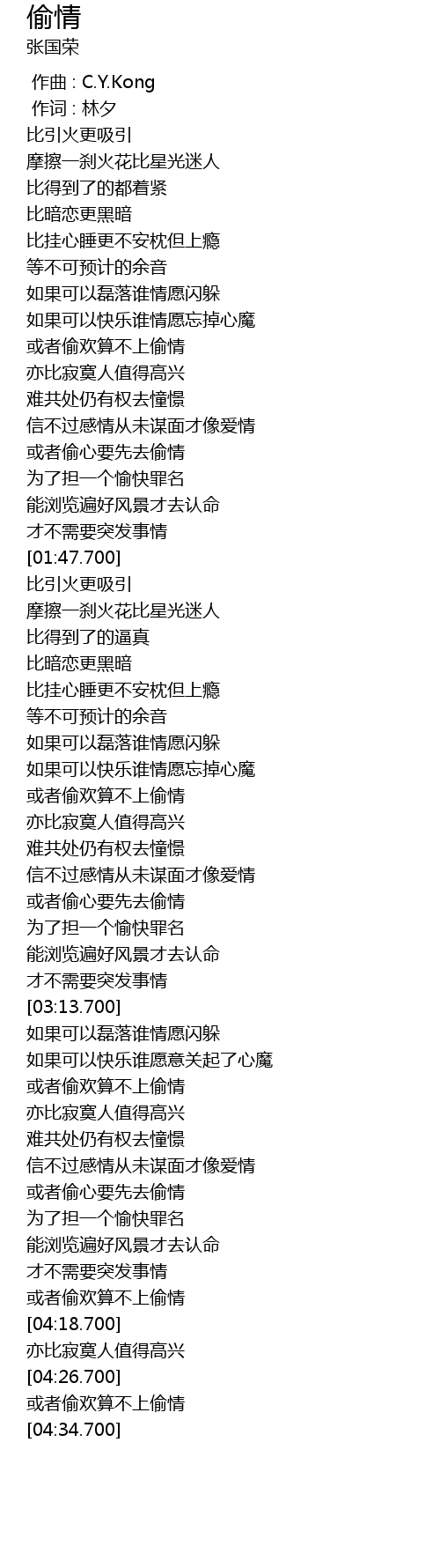 | [00:00.00] | 作曲 : C.Y.Kong |