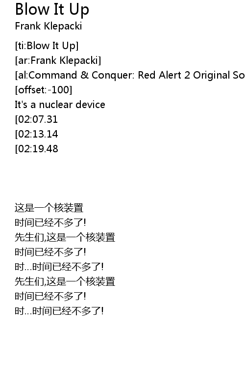 | [02:03.01][02:13.14] | Gentlemen, it's a nuclear device |