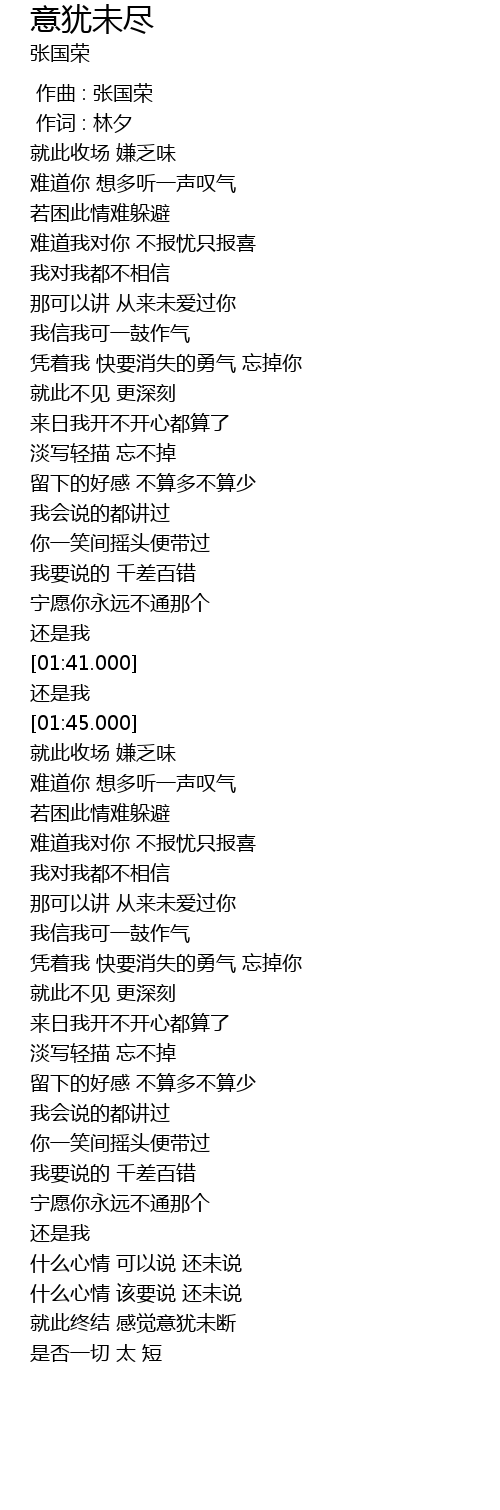 | [02:08.000] | 就此收场 嫌乏味 |