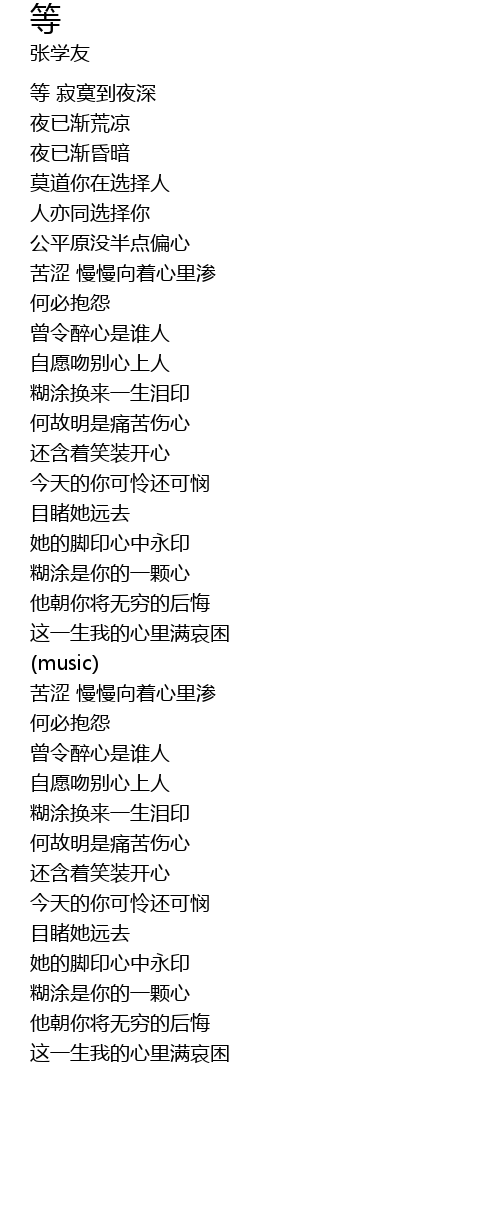 | [00:59.399] | 自愿吻别心上人 |
