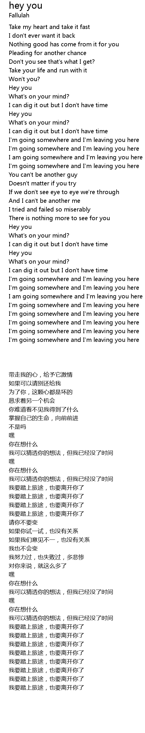 I'm going somewhere and I'm leaving you here |