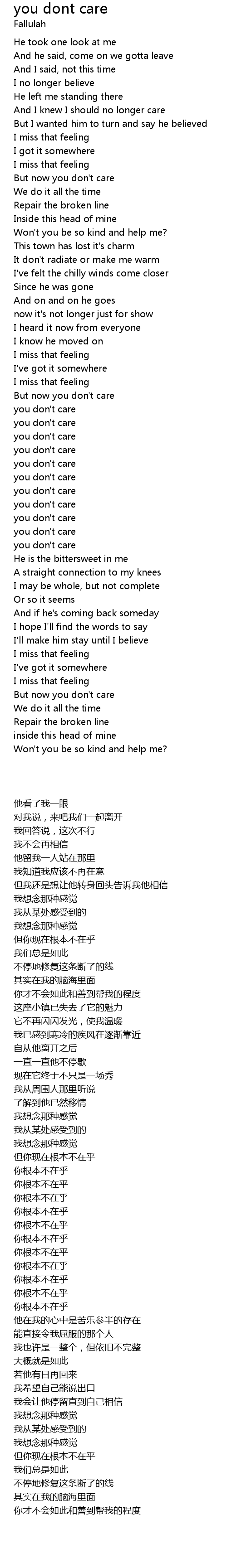 And I knew I should no longer care |