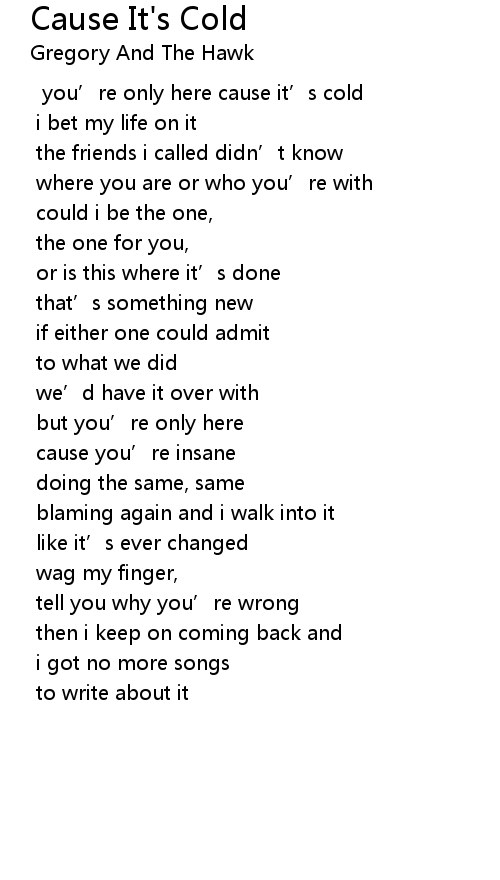 | you' re only here cause it' s cold | |