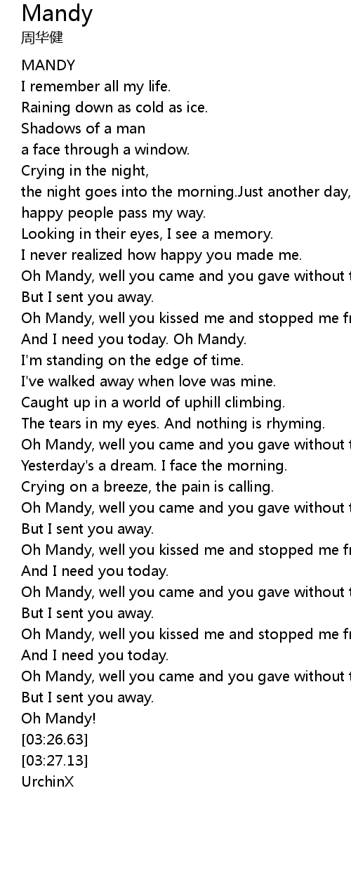 And I need you today. Oh Mandy. |