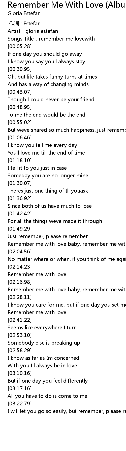 | [02:19.86] | Remember me with love baby, remember me with love |