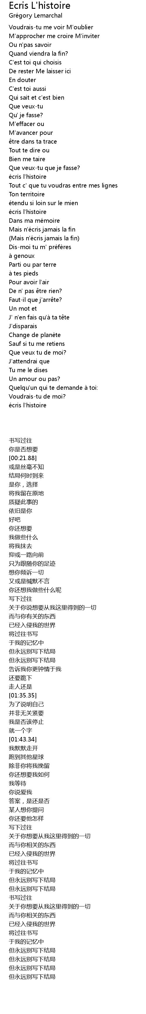 | [01:25.92] | (Mais n'écris jamais la fin) |
