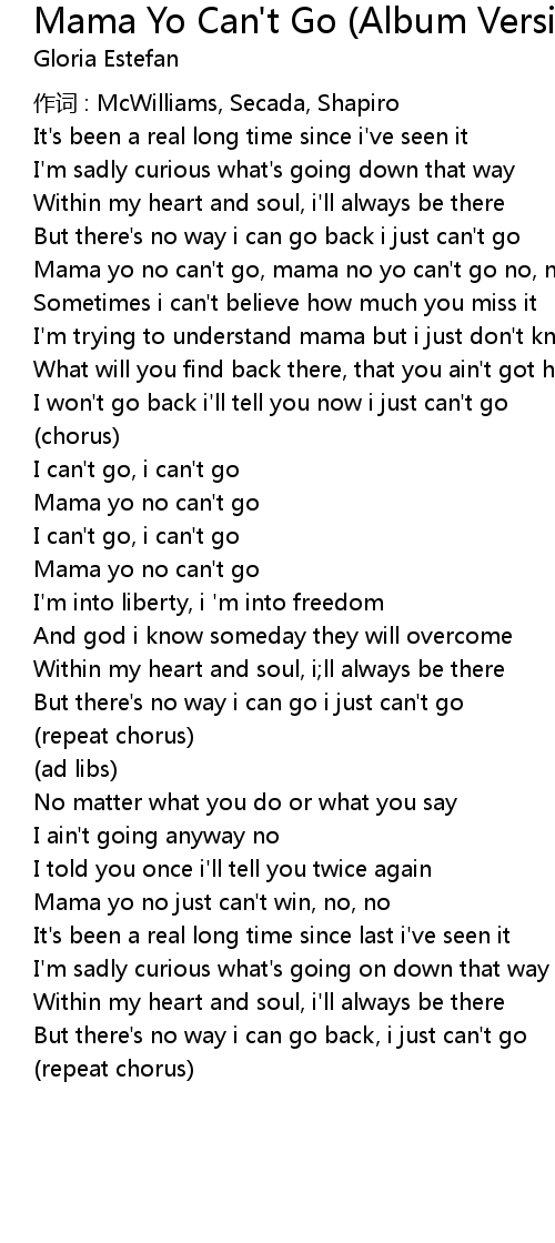 | Mama yo no can' t go, mama no yo can' t go no, no | |