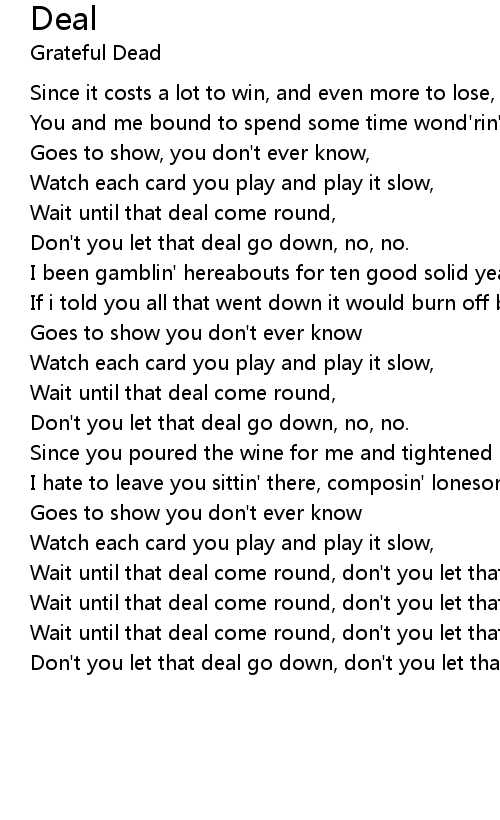 Wait until that deal come round, don't you let that deal go down. |
