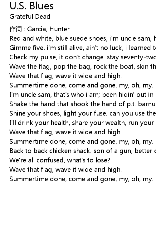 | Red and white, blue suede shoes, i' m uncle sam, how do you do? | |