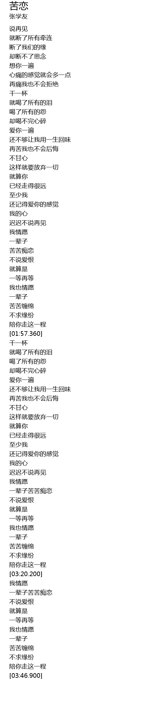 | [03:23.820] | 一辈子苦苦痴恋 |