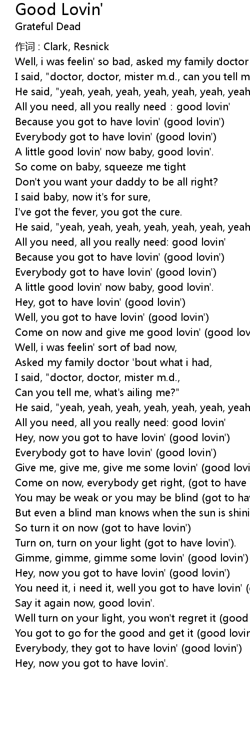 | Because you got to have lovin' good lovin' | |