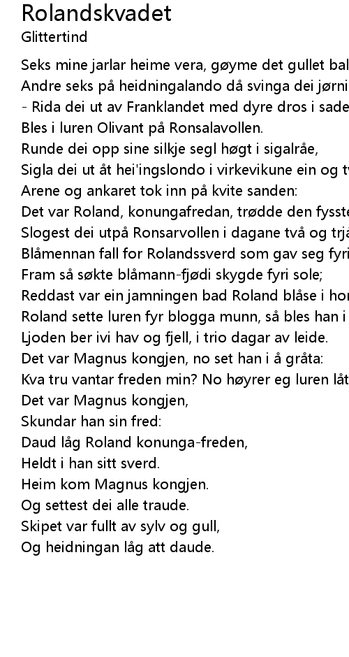 | Det var Roland, konungafredan, trødde den fysste på land. | |
