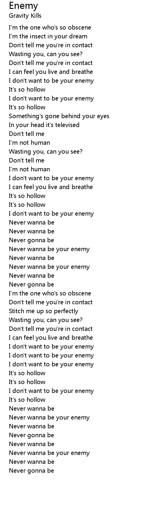 Never wanna be your enemy |