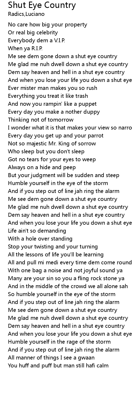 | Me see dem gone down a shut eye country | |