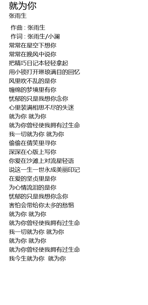 | [01:35.60] | 就为你 就为你 |