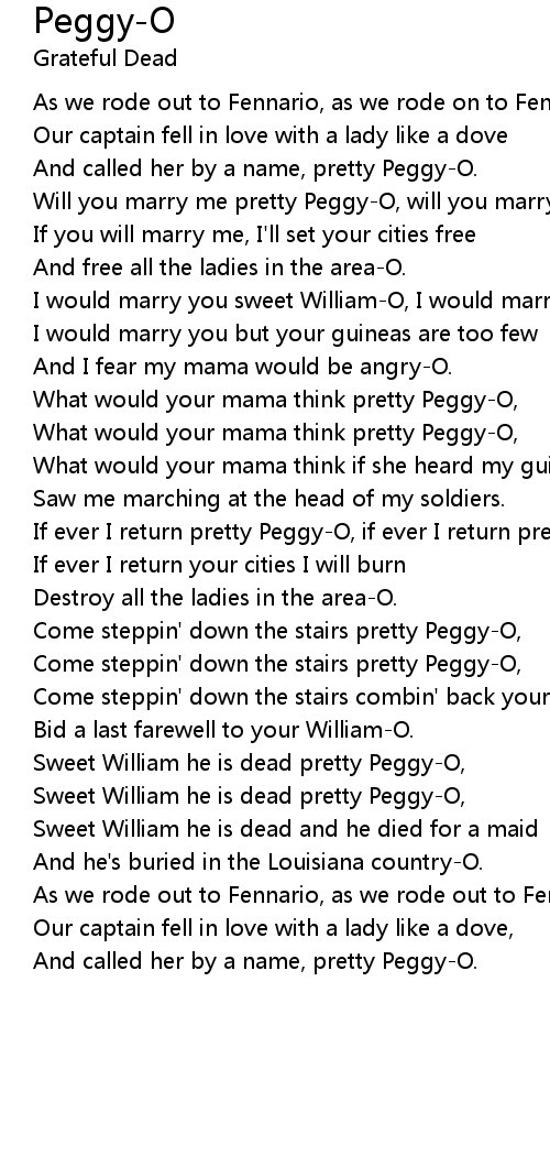 And called her by a name, pretty Peggy-O. |