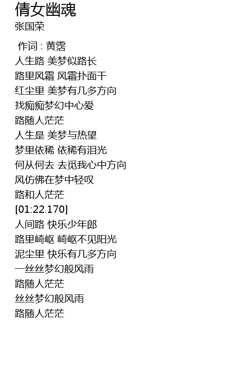 | [01:14.848] | 路和人茫茫 |