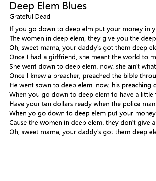 Oh, sweet mama, your daddy's got them deep elem blues |