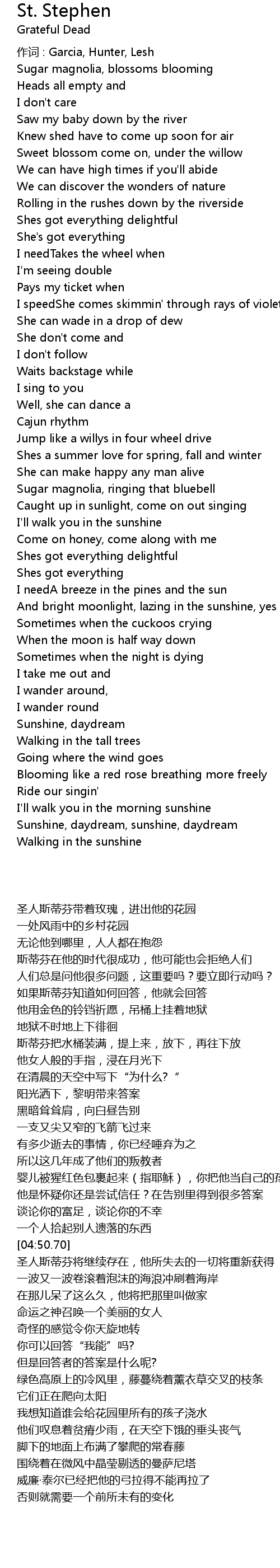 | 作词 : Garcia, Hunter, Lesh | |