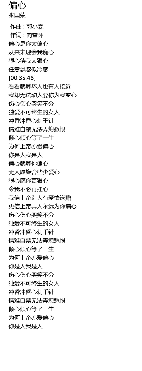 | [00:25.60] | 偏心是你太偏心 |