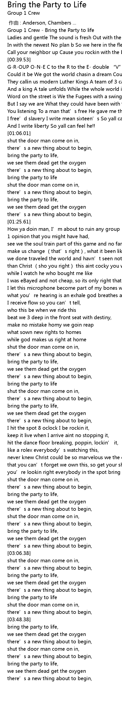 | [00:00.81] | Group 1 Crew - Bring the Party to life |