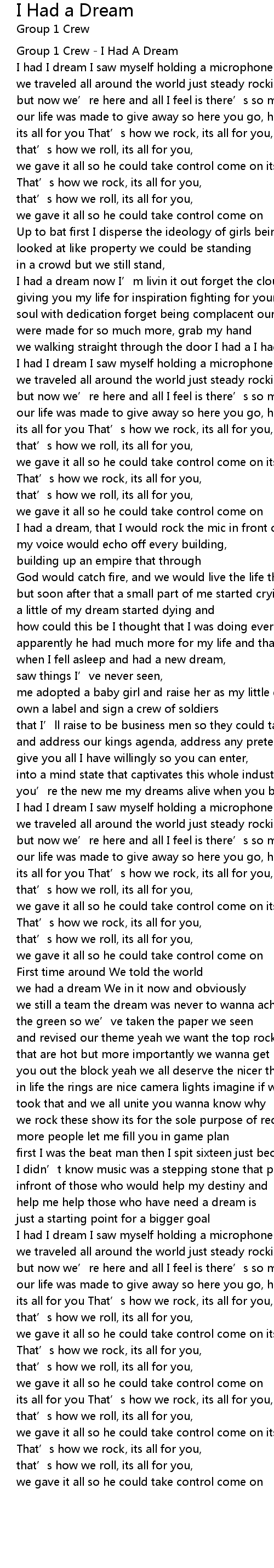 | [00:00.53] | Group 1 Crew I Had A Dream |