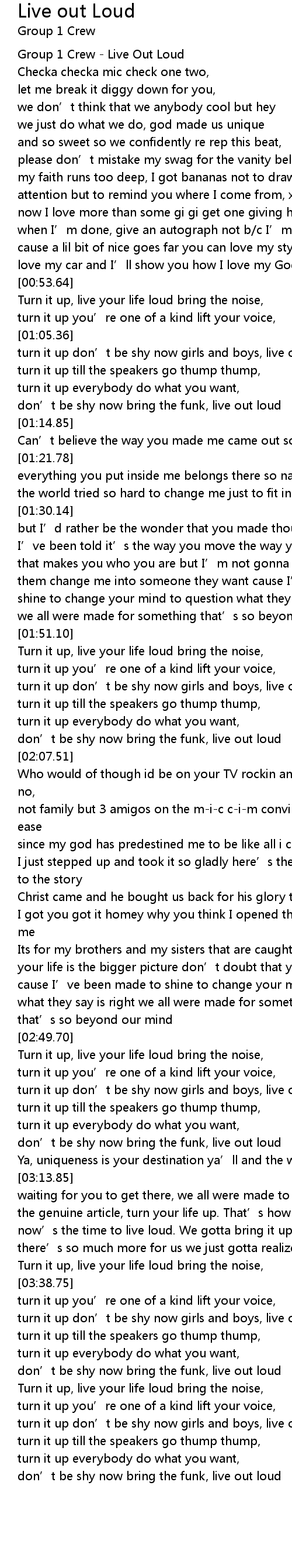 | [00:02.22] | Group 1 Crew Live Out Loud |