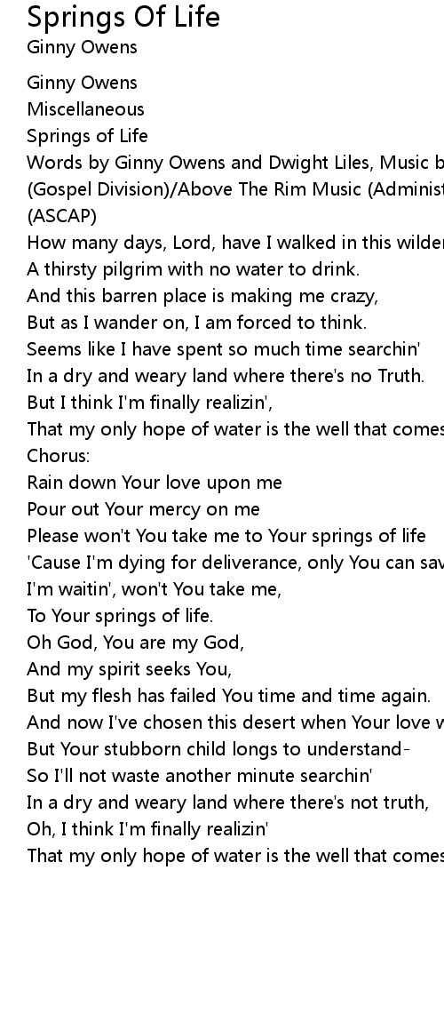 Please won't You take me to Your springs of life |